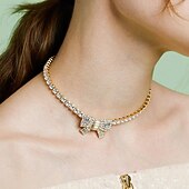 More information about Choker Necklace Rhinestones Women's Fashion Personalized Artistic Tassel Fringe Bowknot Wedding Circle Necklace For Wedding Party Daily