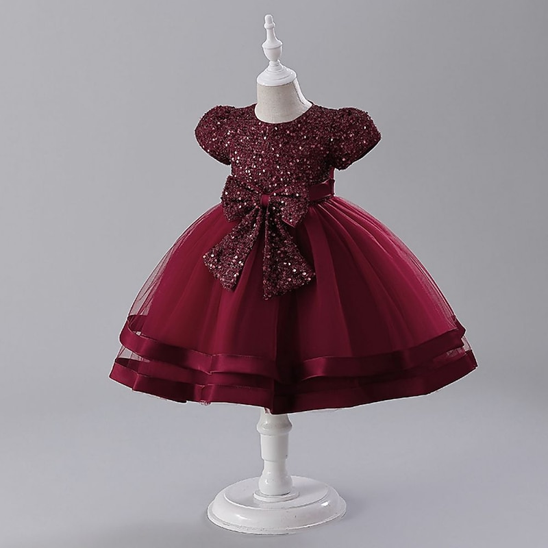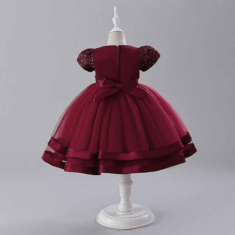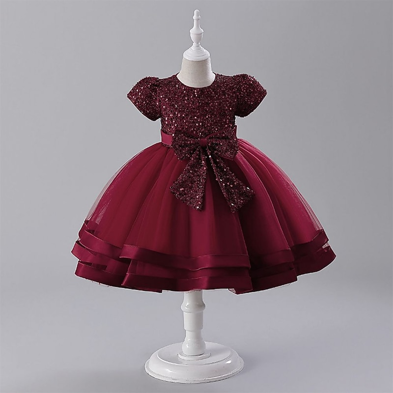 Why Choose Kids Girls' Party Dress Solid Color Short Sleeve Special Occasion Princess Polyester Party Dress Pink Princess Dress Summer Spring 3-8 Years Pink Wine?