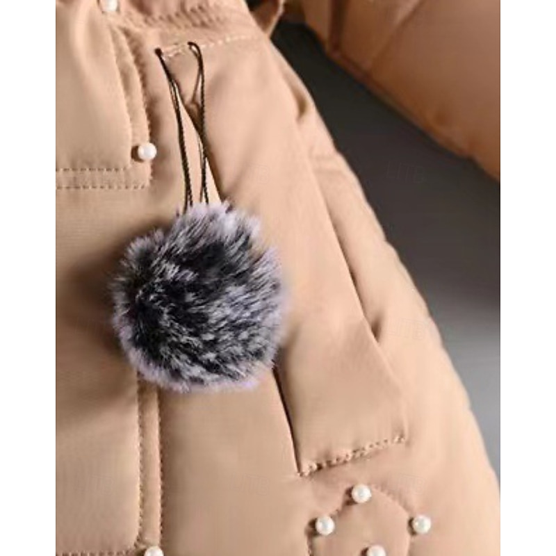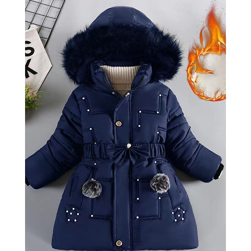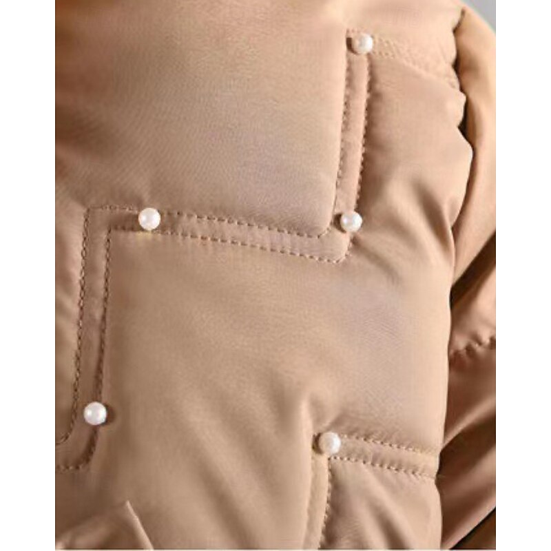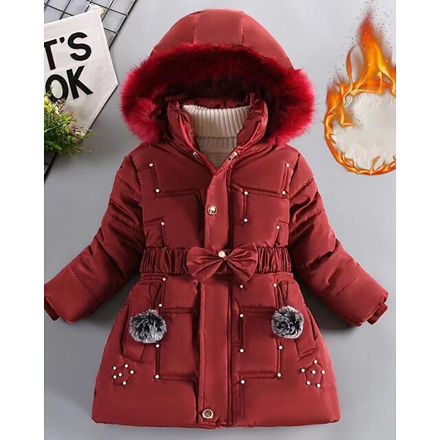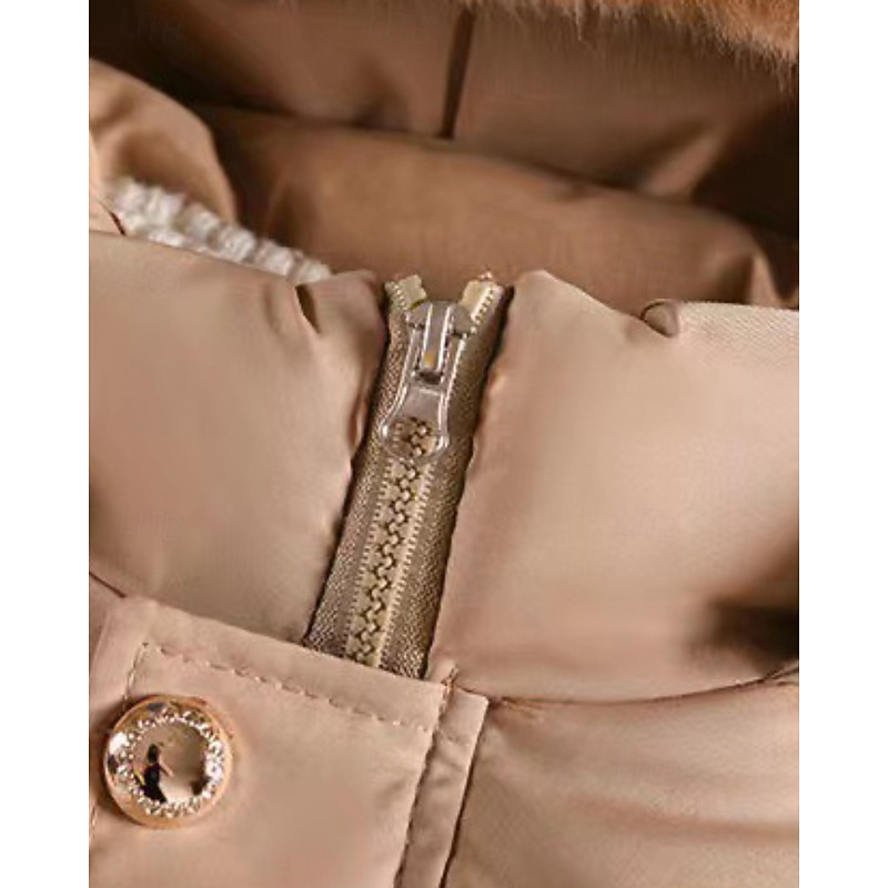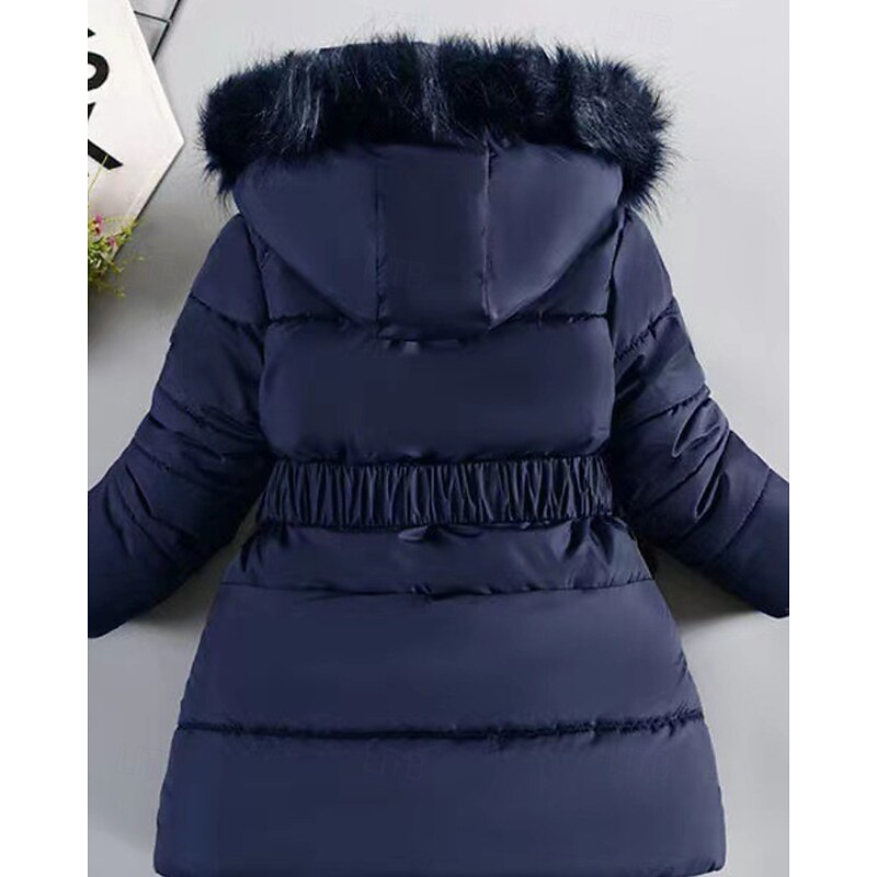 More information about Kids Girls' Down Coat Solid Color Streetwear Fur Trim Zipper Pocket School Coat Outerwear 4-12 Years Winter Black Wine Navy Blue