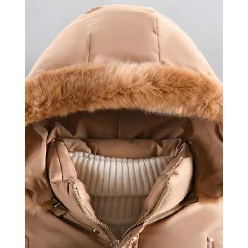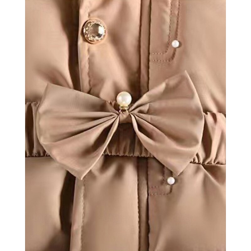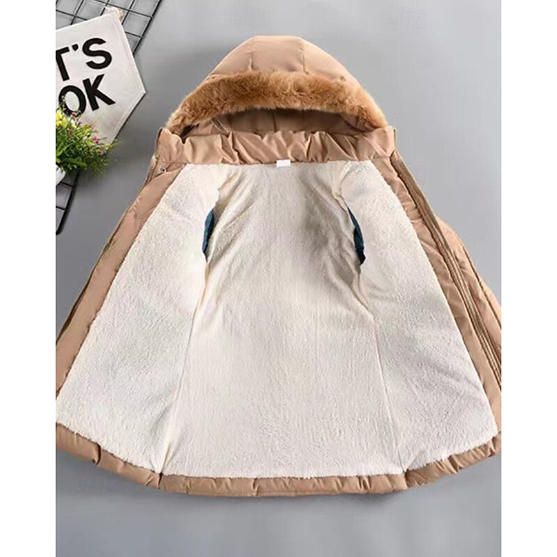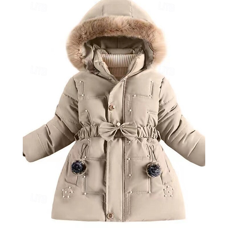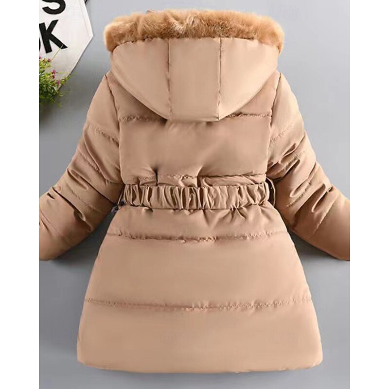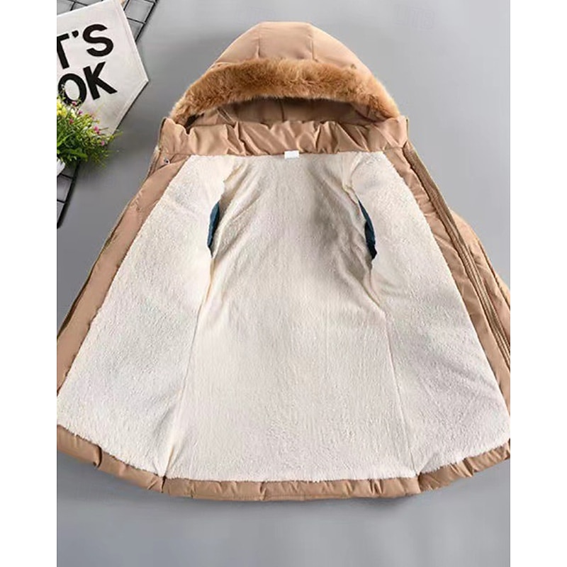 More information about Kids Girls' Down Coat Solid Color Streetwear Fur Trim Zipper Pocket School Coat Outerwear 4-12 Years Winter Black Wine Navy Blue