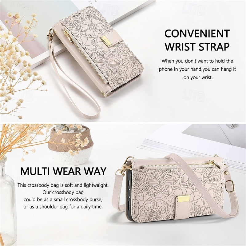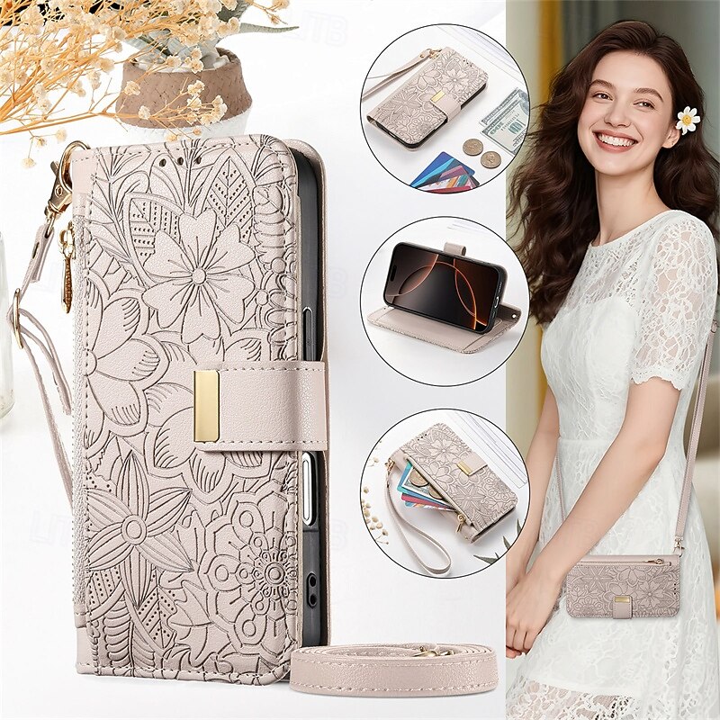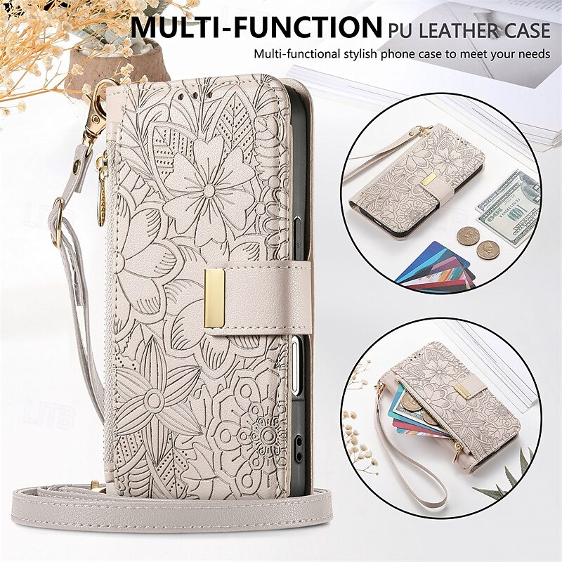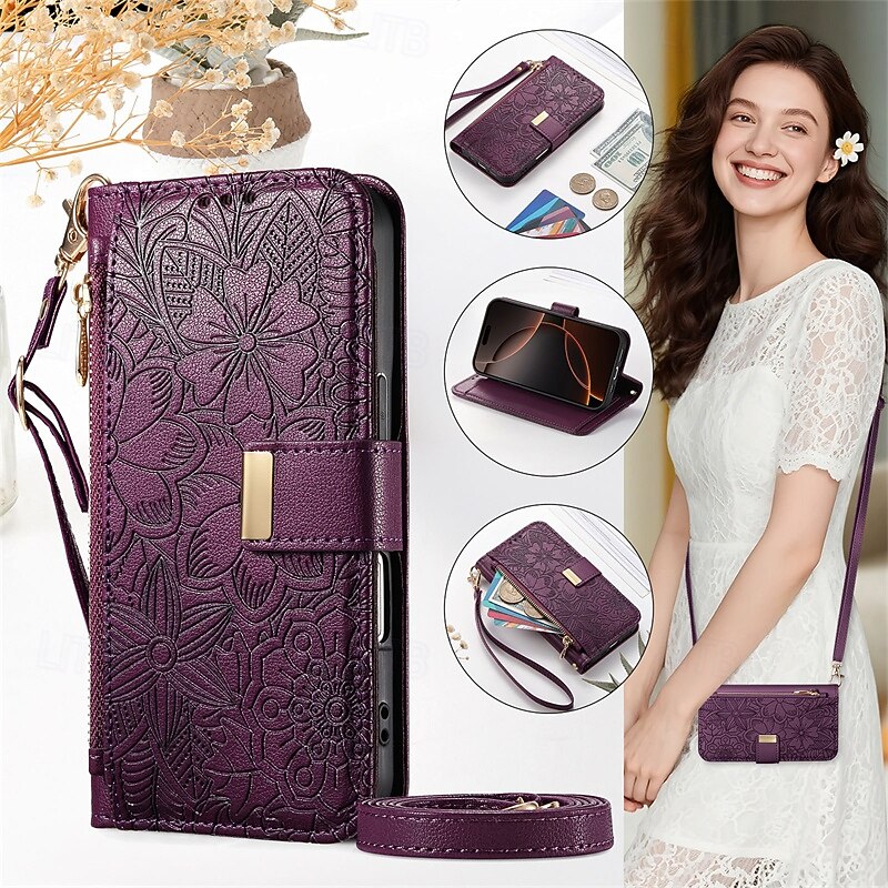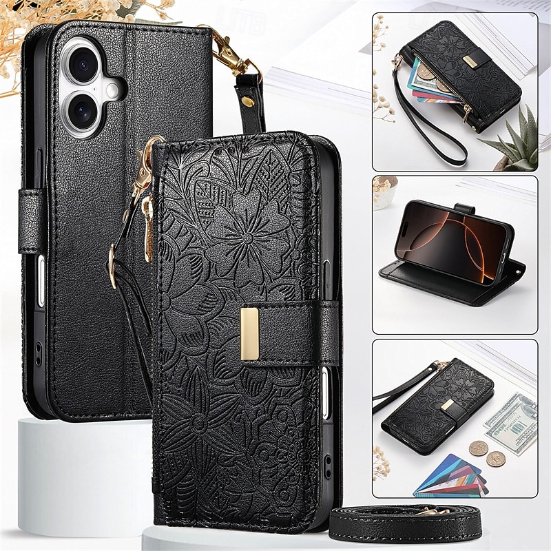 Why Choose Phone Case For iPhone 16 15 14 Pro Max Plus 16e 13 Pro Max Wallet Case Flip Cover Zipper with Lanyard with Wrist Strap Tree Flower Floral TPU PU Leather?