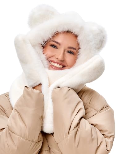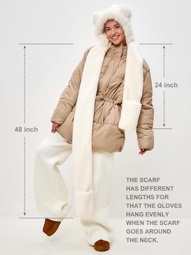 More information about LATTEMARMALATTE Cute Cat Ears Winter Hat, 3 in 1 Plush Animal Hat with Mittens & Scarf, Faux Fur Hood for Kids Adults