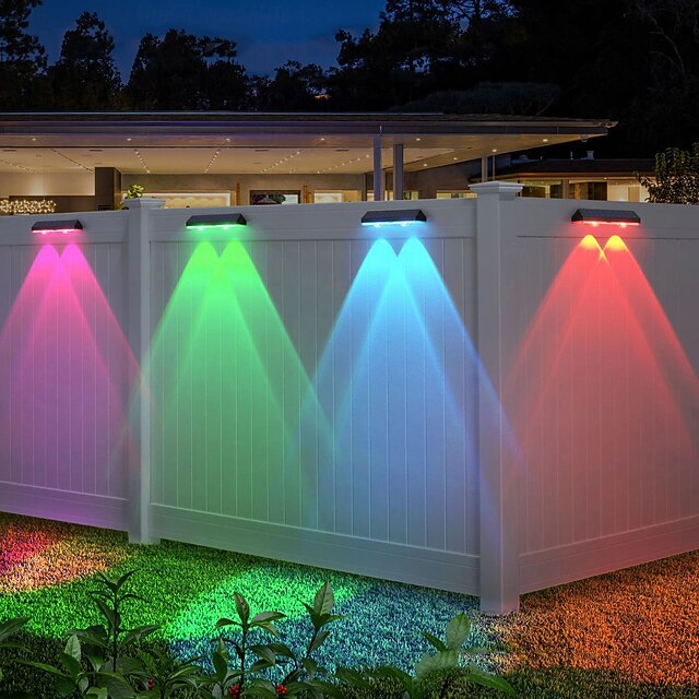 popular ! 2/4pcs Solar Fence Light RGB Color Changing Outdoor Solar Wall Lamp Garden Yard Decor Step Lamp IP65 Waterproof Pathway Wall Stair Lamp Balcony Porch Lighting Decoration