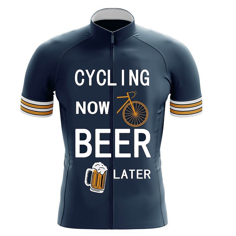 popular ! Men's Cycling Jersey Beer Short Sleeve Bike Top with 3 Rear Pockets Mountain Bike MTB Road Bike Cycling swift Dry Reflective Strips Back Pocket Moisture Wicking Sports Black Yellow Navy Blue Clothing