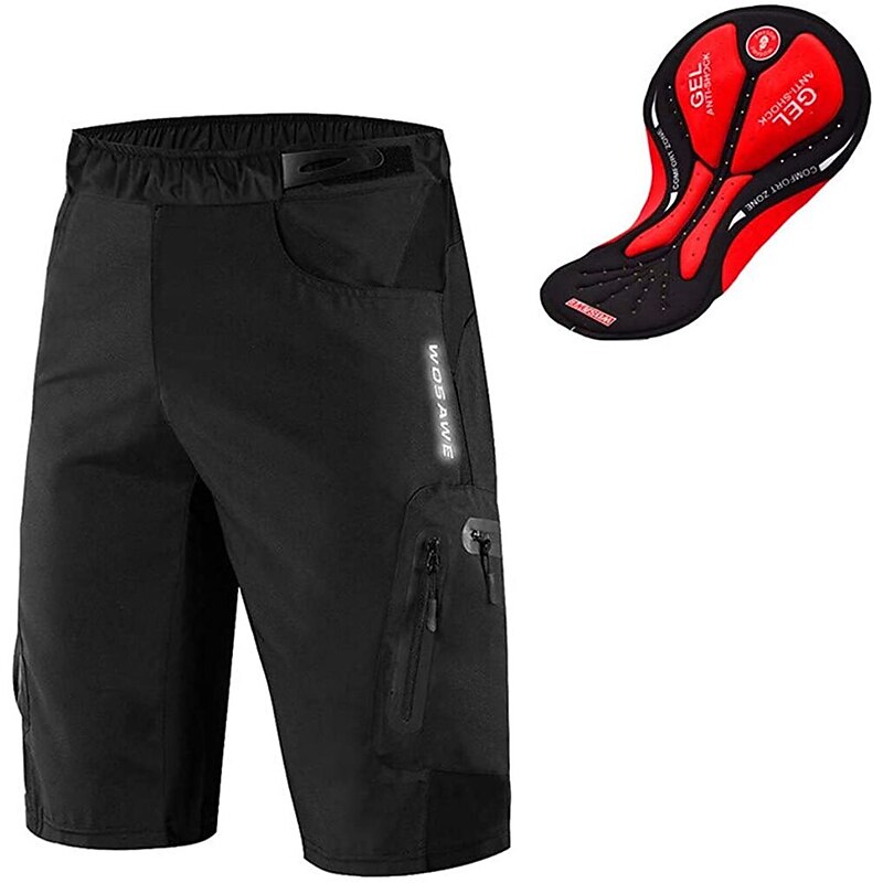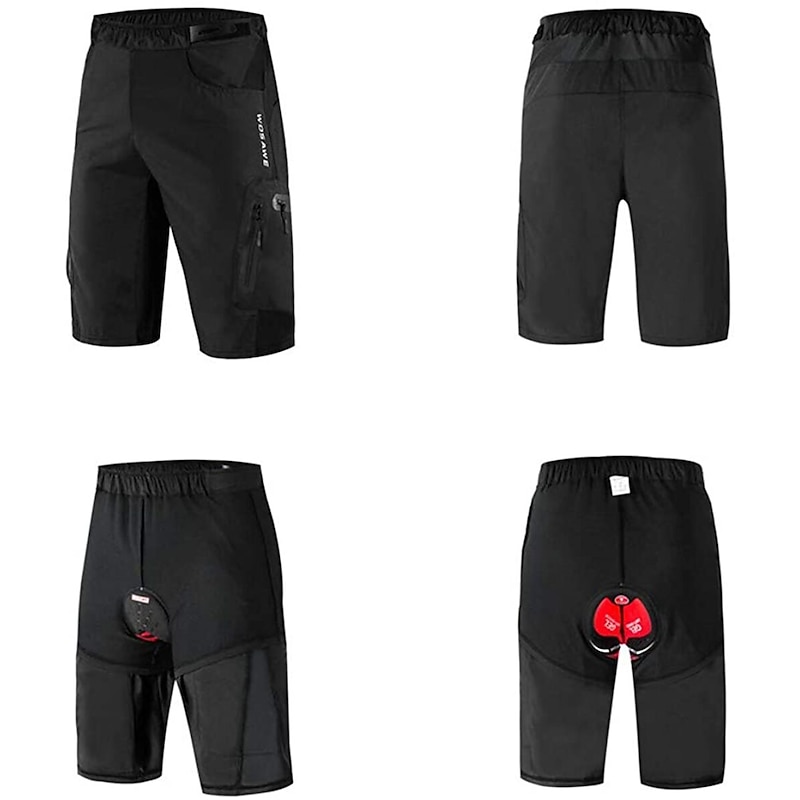 WOSAWE Men's Solid Color Cycling MTB Shorts Cycling Shorts Bike Padded Shorts / Chamois MTB Shorts Loose Fit Mountain Bike MTB Road Bike Cycling Sports 3D Pad Cycling speedy Dry Anatomic Design Black