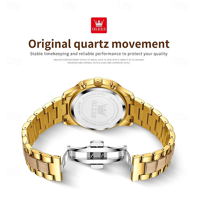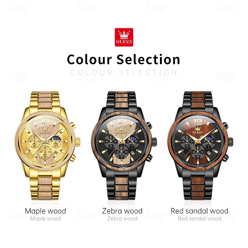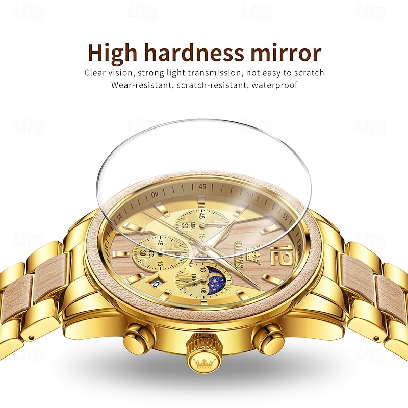 $44.99 - OLEVS 3645 Mens Watch Top Brand Business Original Quartz Watch Solid Wood Multifunctional Chronograph Moon Phase Watch 2025. Shop for cheap Quartz Watches online? Buy at lightinthebox.com on sale today!