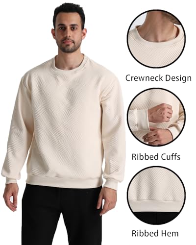 Men's Crewneck Sweatshirt Geometric Texture Sweatshirts Anti-Pilling Solid Casual Long Sleeve Pullover Shirts 4