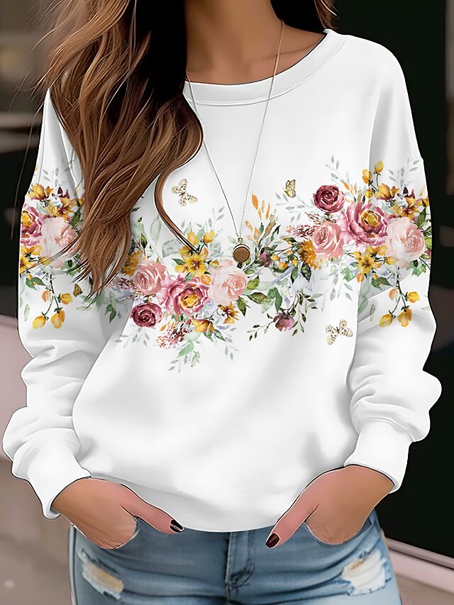 Why Choose Women's Sweatshirt Pullover Floral Cat Street Casual Vintage Sports Basic Round Neck Long Sleeve Top Micro-elastic Fall & Winter Comfrt Breathable smooth Fabric?