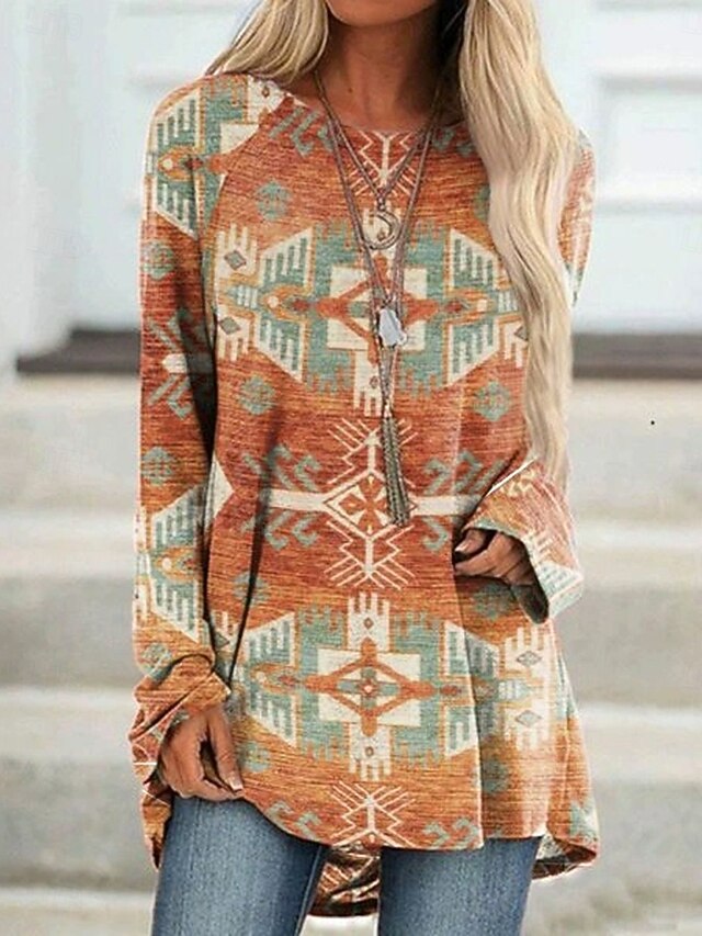 This Women's T shirt Long Sleeve Graphic Tribal Vintage contemporary Classic Long Sleeve Crew Neck Round Neck Long Tops Daily Print Red Blue Spring Fall Prefall combines elegant design with practical functionality. Every detail has been carefully considered to ensure you get the best possible experience. The premium construction means this product will serve you well for years to come.