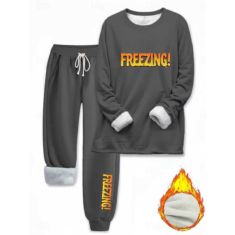 Why Choose Women's Elegant snug Fashion Two Piece Sets Tracksuit Pants Sets Long Sleeve Crew Neck Letter Print Outdoor Vacation Casual Black Pink Dark Pink Spring Regular Fit?