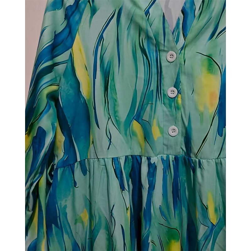 This Women's Midi Dress Casual Dress Print Dress Elegant Fashion present-day Outdoor Daily Going out Regular Fit Graphic Long Sleeve V Neck Blue Spring Autumn combines elegant design with practical functionality. Every detail has been carefully considered to ensure you get the best possible experience. The first-class construction means this product will serve you well for years to come.