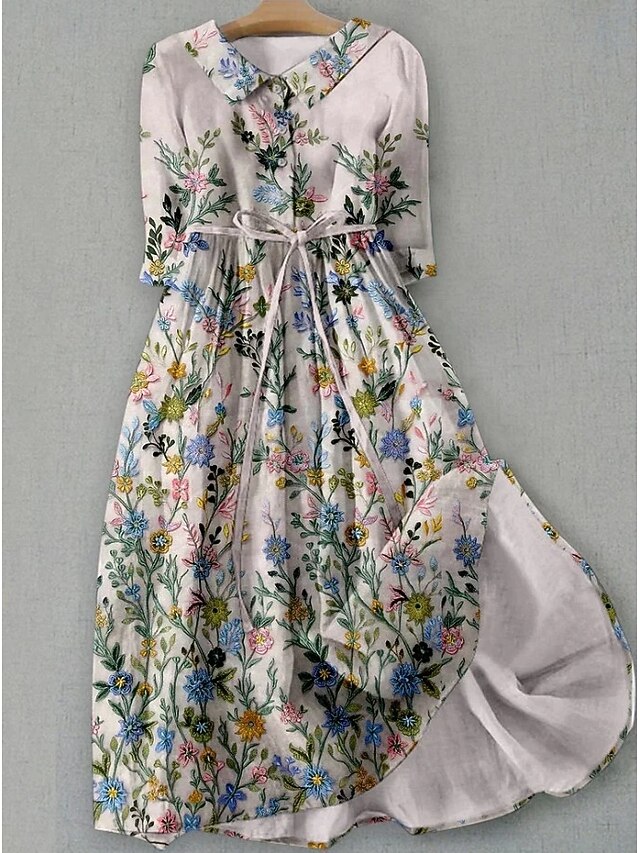 More information about Women's Midi Dress Shift Dress Vacation Casual Boho Daily Holiday Tea Party Regular Fit Floral Graphic Half Sleeve Lapel White Pink Light Brown Blue Summer Spring