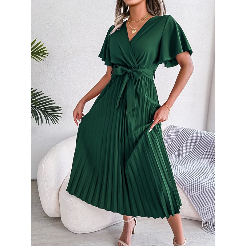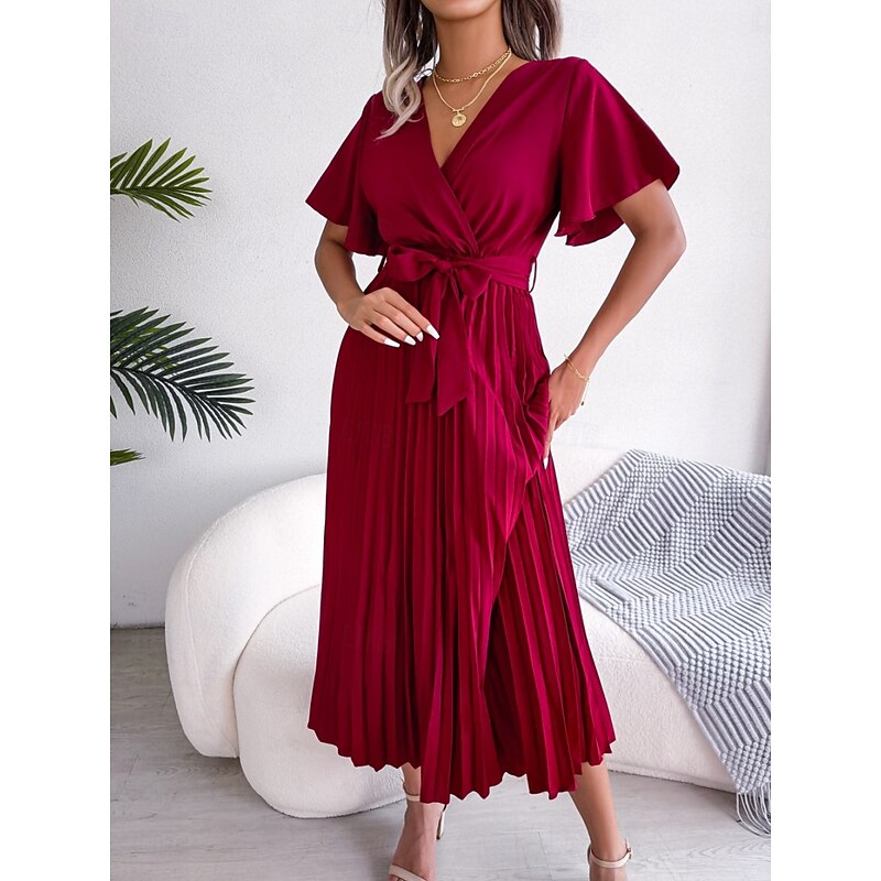 This Women's Midi Dress Casual Dress A Line Dress modern Basic Casual Vacation Daily Regular Fit Plain Short Sleeve V Neck Red Green Summer Spring combines elegant design with practical functionality. Every detail has been carefully considered to ensure you get the best possible experience. The premium construction means this product will serve you well for years to come.