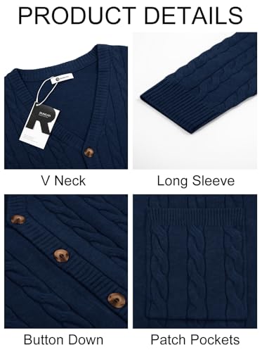 Fabric type: 20% Acrylic, 10% Polyamide, 70% PolyesterCare instructions: Machine WashOrigin: ImportedNeck style: V-NeckStylish Design: The fashion cardigan sweater for men, featuring a timeless V-neckline, intricate cable knit pattern and two patch pockets, this casual sweater exudes sophistication and casual charm. The button-down allows for versatile styling—wear it open for a relaxed look or buttoned up for a polished finishPremium Fabric: Crafted from quality blends, soft material, this open front knit cardigan offers lightweight warmth and exceptional comfort. The fabric is long-lasting while providing a cozy feel for all-day wearOccasion: Perfect for casual wear, business, school, working, dating, party, dinner, meeting, interviews and even athletic or any daily casual occasions. Whether you're dressing up for the office or going for a casual weekend outing, this casual cardigan sweater is a versatile wardrobe stapleMatch Guideline: This v neck cardigan can be paired with a formal shirt, tie, pants, and leather shoes to create a business style. It can also pair with a fashionable t shirt, casual pants, chino pants, or jeans to create an casual and versatile lookEasy Care: Machine washable for easy maintenance, this fall chunky sweater resists shrinking and fading. The reinforced stitching and high-quality buttons ensure durability, making it a long-lasting addition to any wardrobe Perfect for everyday use. excellent materials and excellent craftsmanship ensure long-lasting durability.