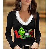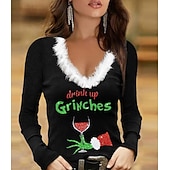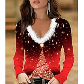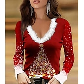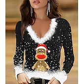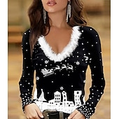 More information about Women's T-Shirt Festive Reindeer Long Sleeve V-Neck Plush Collar Holiday Party Casual Winter Top Black Snowflake Print
