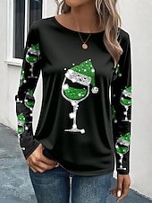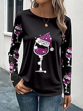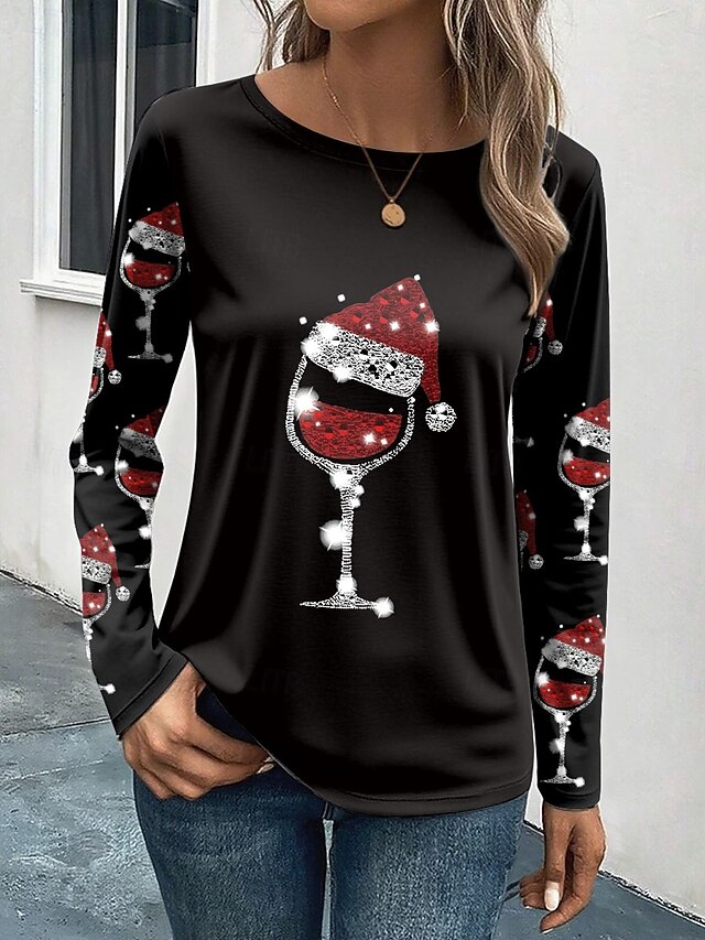 This Christmas Women's T Shirt Graphic Wine Glass Vintage Fashion contemporary Long Sleeve Crew Neck Round Neck Regular Tops Daily Weekend Print Red Blue Purple Green Summer Spring Fall Winter combines elegant design with practical functionality. Every detail has been carefully considered to ensure you get the best possible experience. The premium construction means this product will serve you well for years to come.