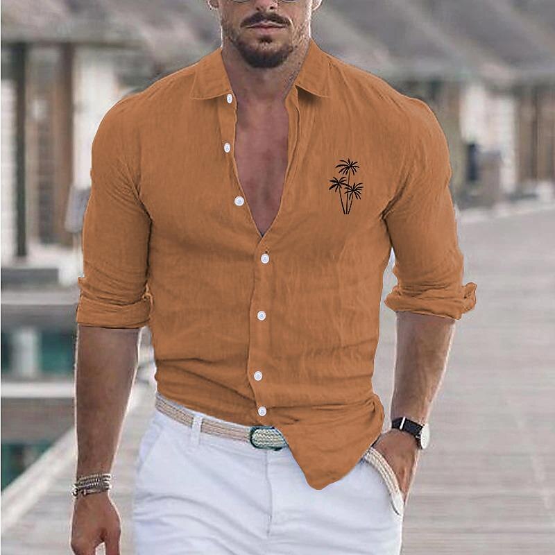 popular ! Men's Shirt White Cotton Shirt Minimalist Aloha Shirt Casual Shirt Cotton Linen Shirt Cotton Shirt Palm Tree Vacation Hawaiian Black White Pink Gray Long Sleeve Lapel Spring & Fall Clothing Apparel