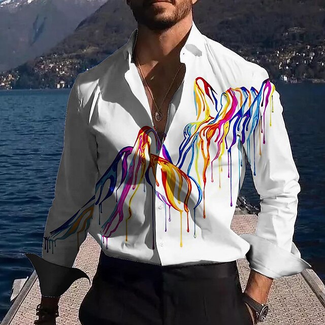 More information about Men's Gradient Shirt Button Up Shirt Long Sleeve Fashion Streetwear Designer Outdoor Casual Daily Fall & Winter Turndown Print Black White Yellow Red Green