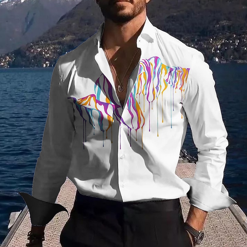 Highlights In collaboration with renowned fashion house we present a limited-edition Men's Shirt with Gradient Graphic Prints in Turndown This polyester piece features long sleeves with print design ideal for Fall & Winter outings Each shirt is exclusive reflecting your individual style