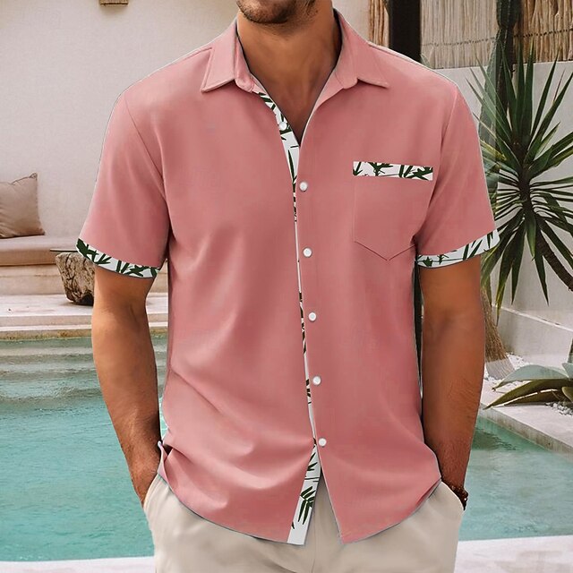 popular ! Men's Leaf Plants Shirt Summer Shirt Button Up Shirt Short Sleeve Fashion Casual Vacation Dailywear Summer Spring Turndown 3D Print Collared Shirts Front One Pocket Pink Blue Purple Green