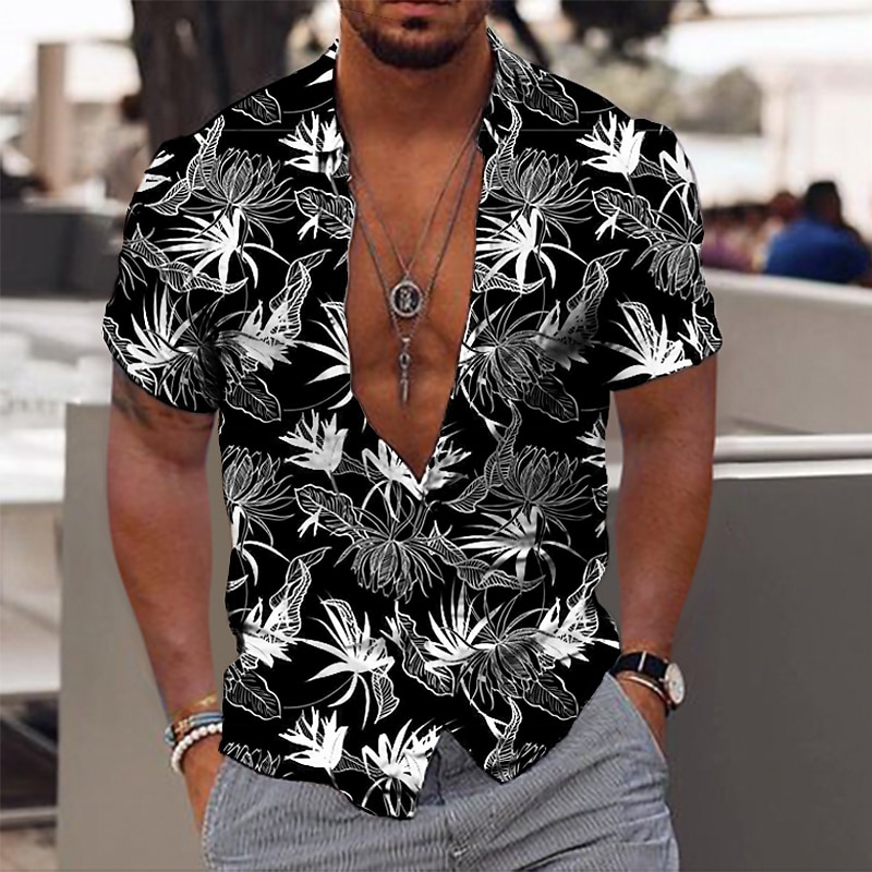 Highlights [Fabric & Material] : Crafted from breathable and lightweight polyester, this men's shirt ensures comfort and ease during the warm spring and summer months. The material is designed to be machine washable and durable, perfect for regular use. [Fit & Style] : This shirt features a new-age, regular fit that flatters the silhouette while providing ample room for movement. Its casual yet tailored design is perfect for creating a fashionable look that is both comfortable and modern. [Design Highlights] : Stand out with a striking floral graphic print set against a classic black backdrop, available in vibrant colors such as green, black, purple, black-white, and light grey. The shirt is accented with a classic turndown collar and button-down front, adding a touch of elegance to its casual vibe. [Versatile Occasions] : Ideal for a variety of occasions, this shirt is perfect for casual outings, outdoor events, holidays, and festive gatherings. Whether you're attending a summer beach party or enjoying a leisurely holiday, this shirt adds a tropical flair to your wardrobe. [Size Range] : Available in sizes S, M, L, XL, 2XL, and 3XL, this shirt is designed to cater to a wide range of body types, ensuring a comfortable and flattering fit for adult men.