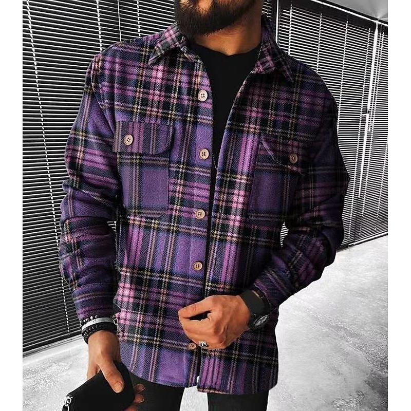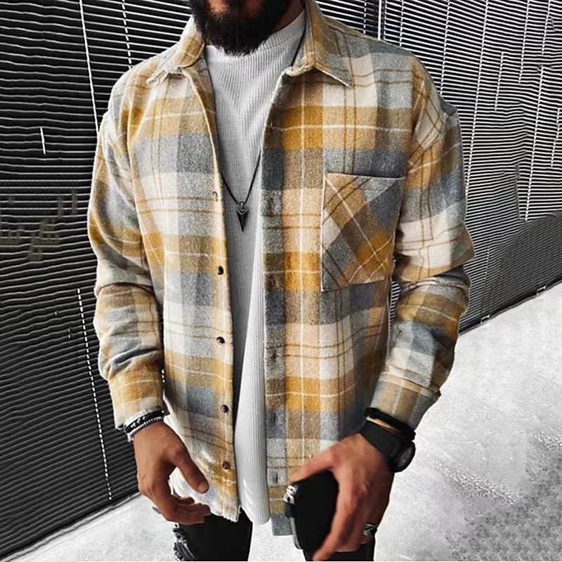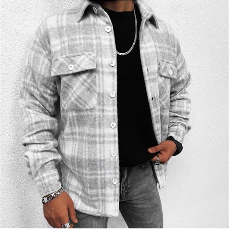 More information about Men's Lattice Shirt Flannel Shirt Overshirt Long Sleeve Shirt Turndown Outdoor Street Black-White White gray Black+Red+Dark Grey Yellow Blue Clothing Apparel Fashion Casual cushy
