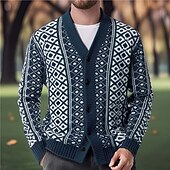 This Men's Geometric Fair isle Sweater Cardigan Sweater V Neck Casual School Vacation Daily 3D Print Knitting Keep cozy Long Sleeve Spring Fall Winter Black Blue combines elegant design with practical functionality. Every detail has been carefully considered to ensure you get the best possible experience. The premium construction means this product will serve you well for years to come.