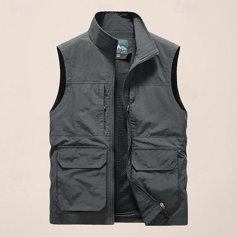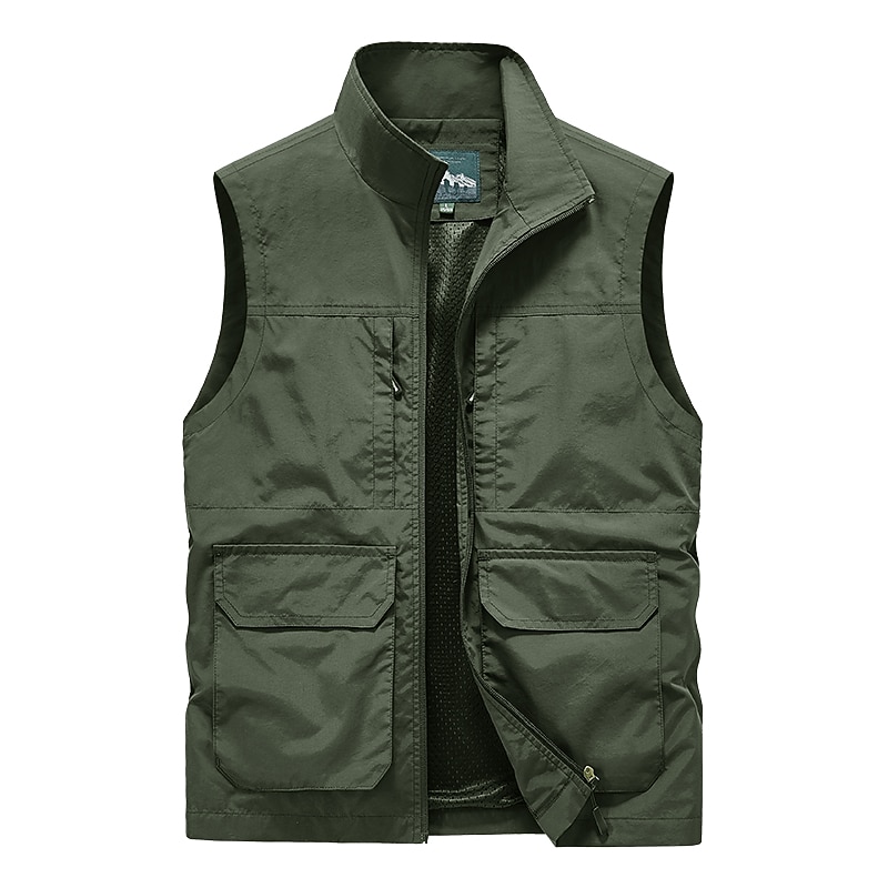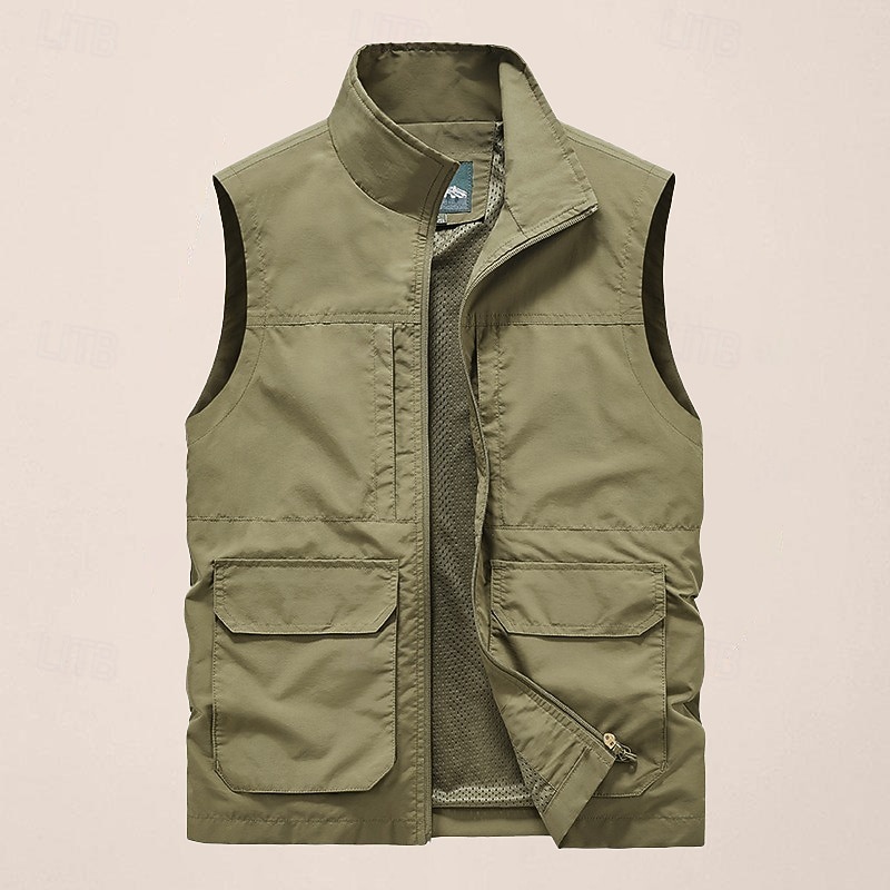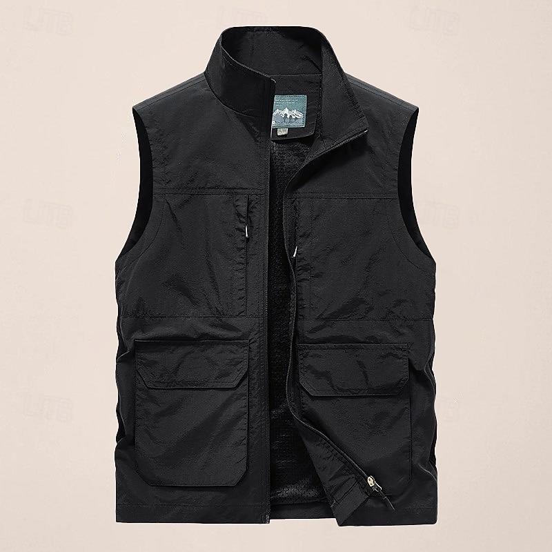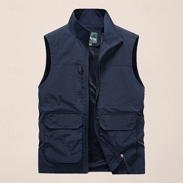 This Men's Fishing Vest Sleeveless Vest Outdoor present-day Contemporary All Seasons Multi Pocket Chinlon Outdoor Solid / Plain Color Zipper Standing Collar Standard Fit Black ash-colored khaki Army Green Vest combines elegant design with practical functionality. Every detail has been carefully considered to ensure you get the best possible experience. The first-class construction means this product will serve you well for years to come.