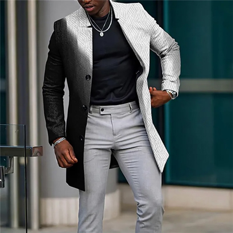 More information about Men's Graphic Prints Gradual Winter Coat Overcoat Coat snug cushy Breathable Fashion Streetwear Business Work Wear to work Going out Pocket Print Fall & Winter Turndown Long Sleeve White Blue