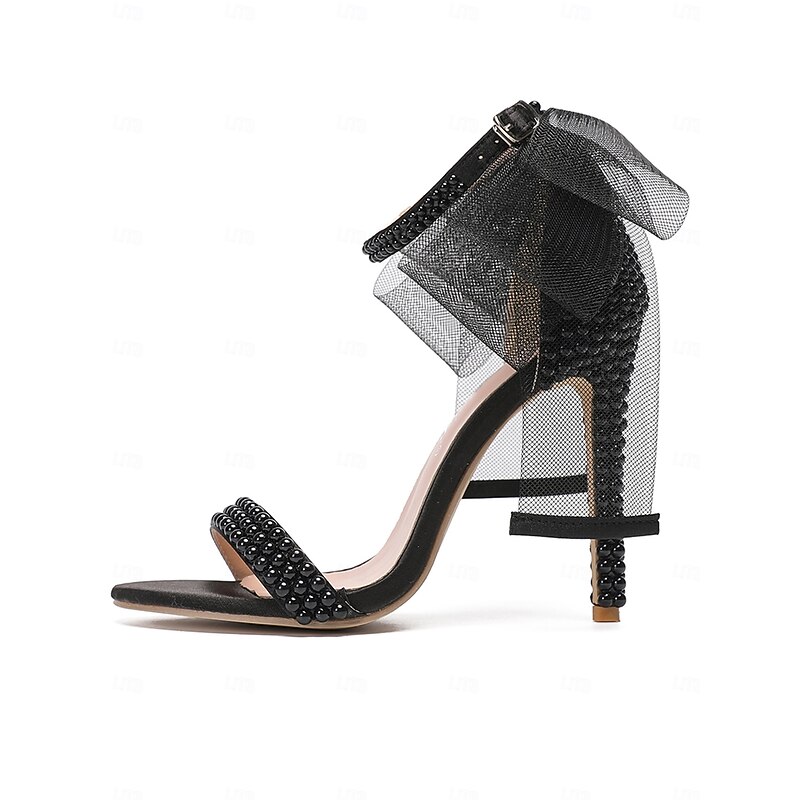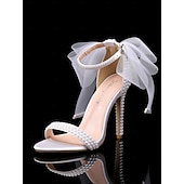 popular ! Women's White Pearl Embellished Wedding Heels with Bow and Ankle Strap – Elegant Bridal Shoes for Weddings and Formal Events