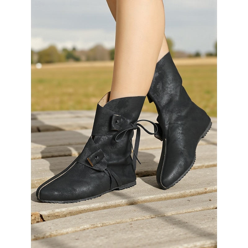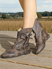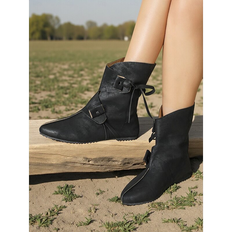 Why Choose Women's Brown Faux Leather Medieval Viking Ankle Boots with Buckle Straps, Retro Renaissance Flat Shoes for LARP, Cosplay, Festivals & Stage Performances?