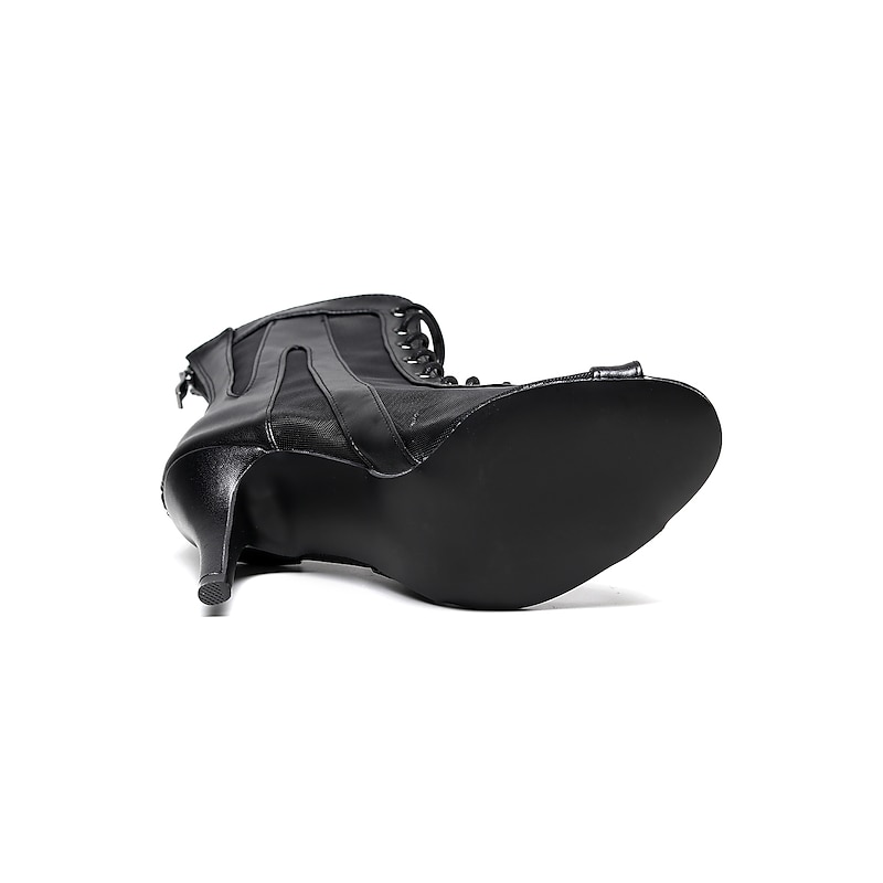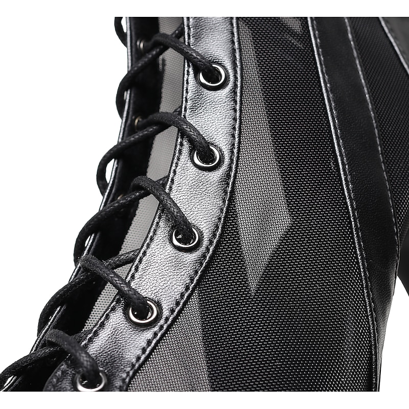 Women's Black Lace-Up Mesh Dance Boots with Peep-Toe and Stiletto Heel - flawless for Latin Dance, Ballroom, and Performance Events