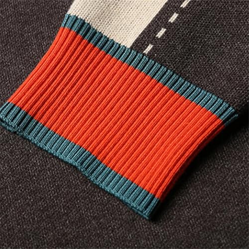 Men Contrast Sweater Buttons Down Outwear V Neck for Patchwork Young Clothing Cardigan 7