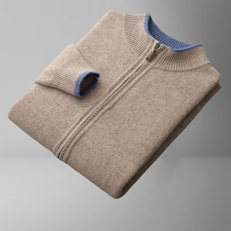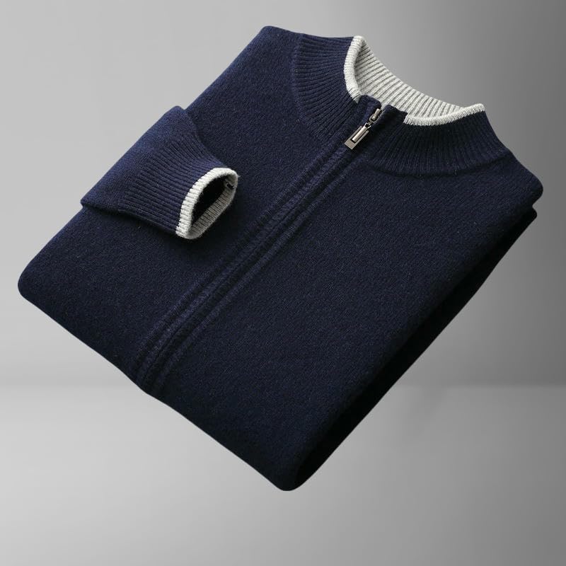 Men's Autumn Winter Color Block Half Turtleneck Zipper Wool Trendy Business Knit Cardigan