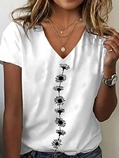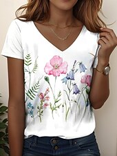 This Women's T Shirt Floral Graphic Plants Casual Short Sleeve V Neck Regular Tops Daily Going out Weekend Print White / Black White Pink off-white Summer Spring combines elegant design with practical functionality. Every detail has been carefully considered to ensure you get the supreme possible experience. The superior construction means this product will serve you well for years to come.