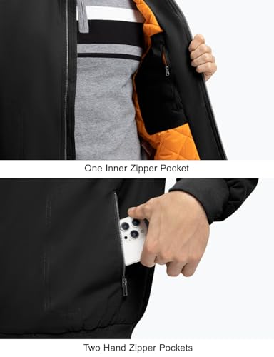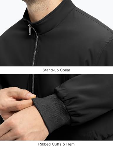 Fabric type: 100% PolyesterCare instructions: Machine WashOrigin: ImportedCrafted of lightweight, water resistant, windproof fabric which prevents against wind and rain to make you feel warm and dry during sport activitiesConspicuous sophisticated orange lining, enhance the safety of physical exercise at night or outdoor activities, practical and fashionFeaturesed stand collar, full zip, ribbed cuffs and hem to ensure fit, this mens windbreaker jackets will keep you warm and comfortable at work or while outdoorsDesigned with two front slash zipper pockets and an internal zippered pocket that you can place phone, cash, key or other essentialsRdruko mens winter bomber jackets are great for golf, travelling, hiking, skiing, fishing, casual wear, etc Perfect for everyday use. first-class materials and excellent craftsmanship ensure long-lasting durability.