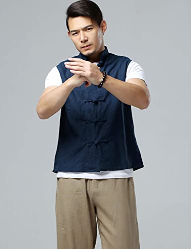 CORETIC Mens Linen Cotton Waistcoat Casual Vintage Kung Fu Shirt Sleeveless Vest Jacket 4