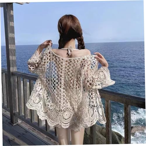 Summer Cardigan for Women, Long Sleeve Crochet Hollow Cardigan, Loose Lightweight Womens Summer Cardigan, Boho Knitted Kimono(One Size) Creamy White 5