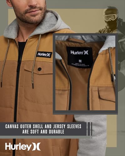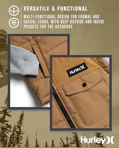 More information about Hurley Men's Voyager Jacket - Lightweight Hooded Quilted Canvas Sweater Vest Jacket - Insulated Utility Jacket for Men (S-XL)