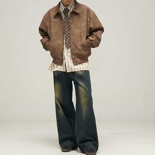 Men's Loose Leather Jacket Zip-Up Motorcycle Bomber Jackets timeless Causal PU Leather Coats