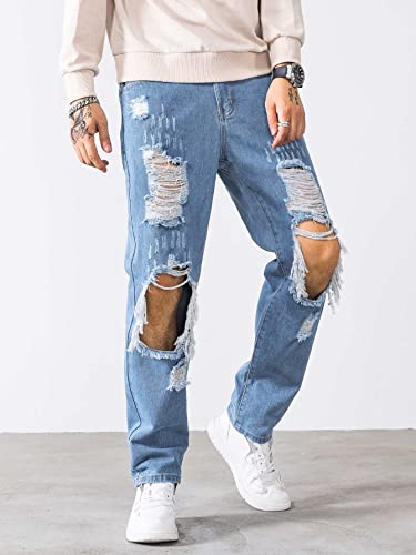 This WDIRARA Men's Cut Out Ripped Frayed Zipper Fly Long Straight Leg Denim Jeans combines elegant design with practical functionality. Every detail has been carefully considered to ensure you get the best possible experience. The remarkable construction means this product will serve you well for years to come.