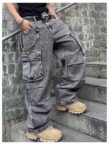 SOLY HUX Men's Cargo Jeans Casual Wide Leg Hip Hop Baggy Denim Pants Y2k Streetwear