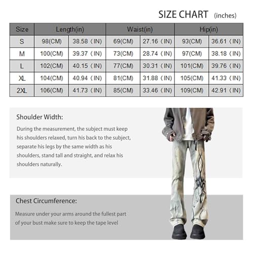 • Retro and trendy design: This men's jeans features a retro wash process, paired with a personalized flame print, full of street retro atmosphere, suitable for trendsetters who pursue a one-of-a-kind style.