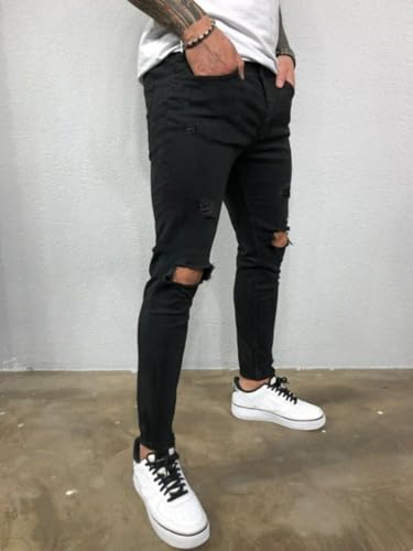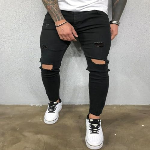 popular ! Jeans Pants Trouser Denim Ripped Hole Street Trendy Black Elastic Tight Slim Fit Men