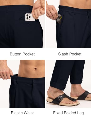 • chic FIT: Men's casual pants are slim fit and designed to be worn as nine-minute pants, front piece pleats and fixed folds on the legs showing a sense of youthful fashion.