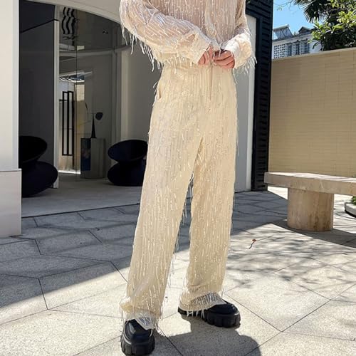 More information about Mens Nightclub Sequin Bead Tringe Straight Leg Fashion Casual Pants Trousers for Men Mens Linen Pants