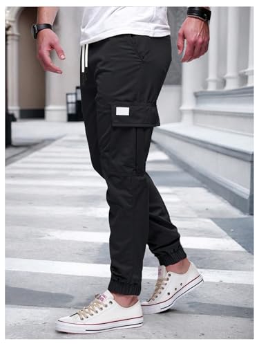 OYOANGLE Men's Jogger Cargo Pants Elastic Drawstring Waist Outdoor Work Trousers 1
