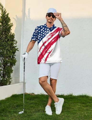 Fabric type: 100% PolyesterCare instructions: Machine WashOrigin: ImportedClosure type: Button【American flag Outfits for Men Material】: This men's polo shirt is made of 100% polyester fabric, featuring lightweight, moisture wicking, quick-drying, UPF50+, soft and breathable, as well as fashionable appearance design, showing off your temperament and exuding masculinity.【Fashion American flag Print Golf Polo Shirts】:This is a Hawaiian golf shirts for men which comes in various styles such as hotdog;car and flamingo and so on. men's American flag polo shirt all come from our experienced designers who know what is trending and help meet everyone's personal style and preferences. Suitable for all sports occasions and everyday casual wear.【Men's Hawaiian Polo Short Sleeve Versatile Wear】: American flag polo shirt for men is made of a full-print four-way stretch fabric that feels smooth and easy to maintain. The cool touch of the fabric keeps you cool, stays smooth and wrinkle-free for a long time, looks neat and the overall fitted length is designed to the middle of the hip, this length gathers at the front, giving you a slimmer, more elegant look.【American flag Golf Shirts】: Is this the patriotic polo shirt you've been looking for? The uniquely designed American flag print turns this polo shirt into a funny fashion piece that will be a favorite among American flag lovers! It is also made of super soft, lightweight, stretchy and quick-drying fabric that will keep you comfortable all day long.【Golf Apparel Outfits for Men Gift】:Men's American flag golf shirt recommended hand wash, machine wash, dry, do not bleach, acceptable. The men's polo shirt is the perfect gift for a family member, boyfriend or friend who loves the outdoors, and it will make the best birthday present. Perfect for everyday use. excellent materials and excellent craftsmanship ensure long-lasting durability.