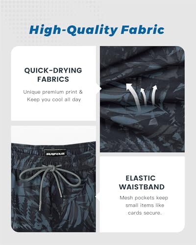 SURF CUZ Mens Swim Trunks with Compression Liner 5" Swim Shorts speedy Dry Bathing Suit Swimming Trunks Zipper Pockets