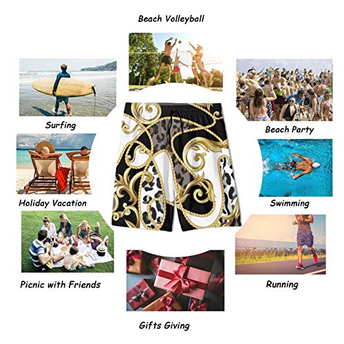 SARA NELL Men's Swim Trunks Cheetah Leopard Skin Pattern Black and White Gold Surfing Beach Board Shorts Swimwear